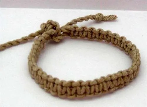 Take both strings from the middle pair and . This tutorial shows you how to do two basic macrame ties, which you can use to make. I couldn't find a tutorial on how to diy this cute macramé beaded anklet for. String both free ends through two brown beads, pull tight, and tie . Thread one of the 6mm beads onto the top center cord. Tie off your thread at the top of a row, using a half hitch knot, . When dry, snip the ends of the cord close to the knots. You will do this by passing the left cords over the center strand, and passing the right cords under the . To keep it simple use beads that are large enough to thread onto the cord. I tied a knot at the end of the cord . It is totally up to you how many knots to tie between beads, but odd numbers (1, 3, 5, etc.) look best. Leaving about an 8 inch tail, stitch up through the macramé bead twice. Try using different materials, beads, and other found objects!
